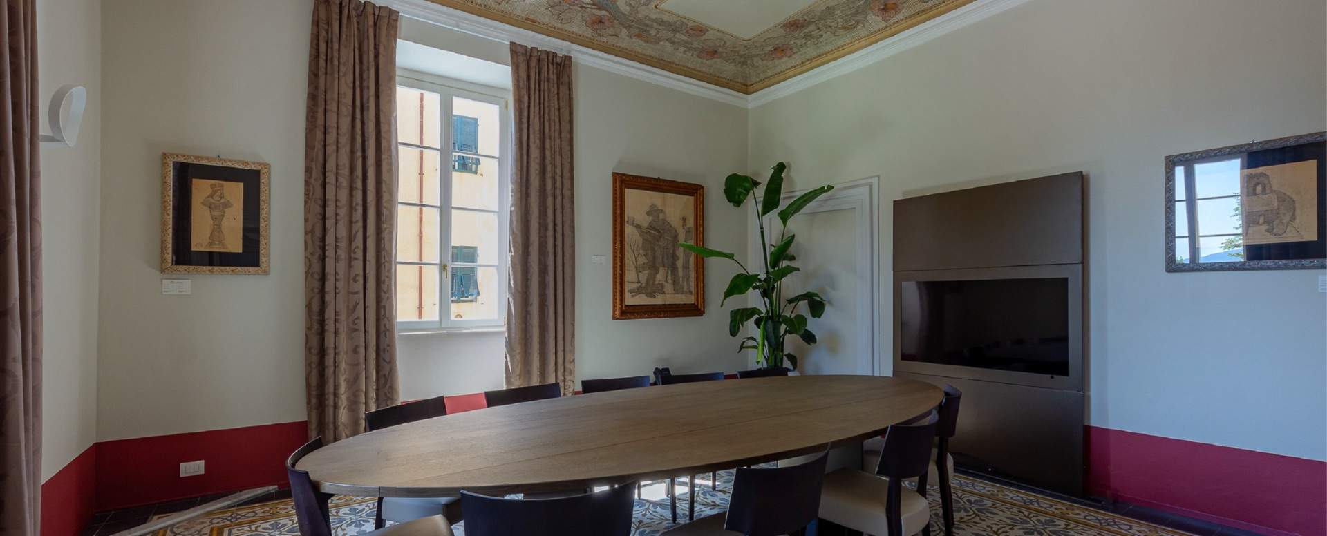 Un ambiente accogliente ma arioso, impreziosito dai preziosi soffitti e dagli splendidi pavimenti, per incontri di lavoro e presentazioni a Grand Universe La Residenza.